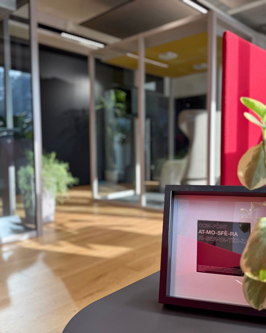 Lo showroom di Sant’Ippolito restituisce ciò che nessuna scheda tecnica può dare: l’esperienza percettiva. Il progettista entra, sperimenta la riduzione del rumore, controlla la qualità dell’aria, verifica la luce, tocca i pannelli in PET per sentirne texture e resistenza. Può testare l’ergonomia del piano regolabile, osservare come si comporta il vetro scrivibile sotto luce naturale e artificiale.