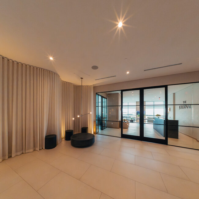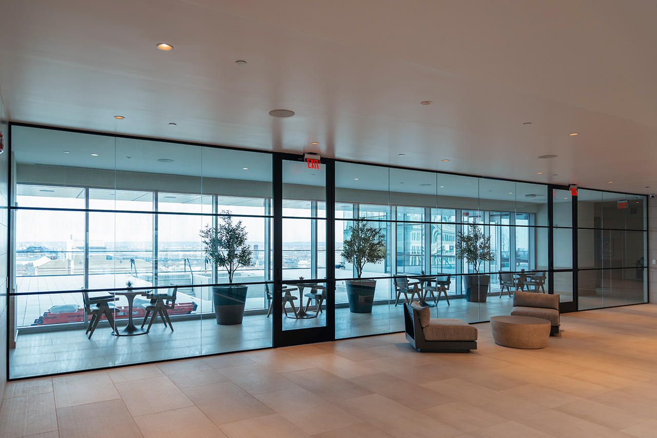 Trasparenze continue e dettagli calibrati definiscono gli spazi di One Journal Square.